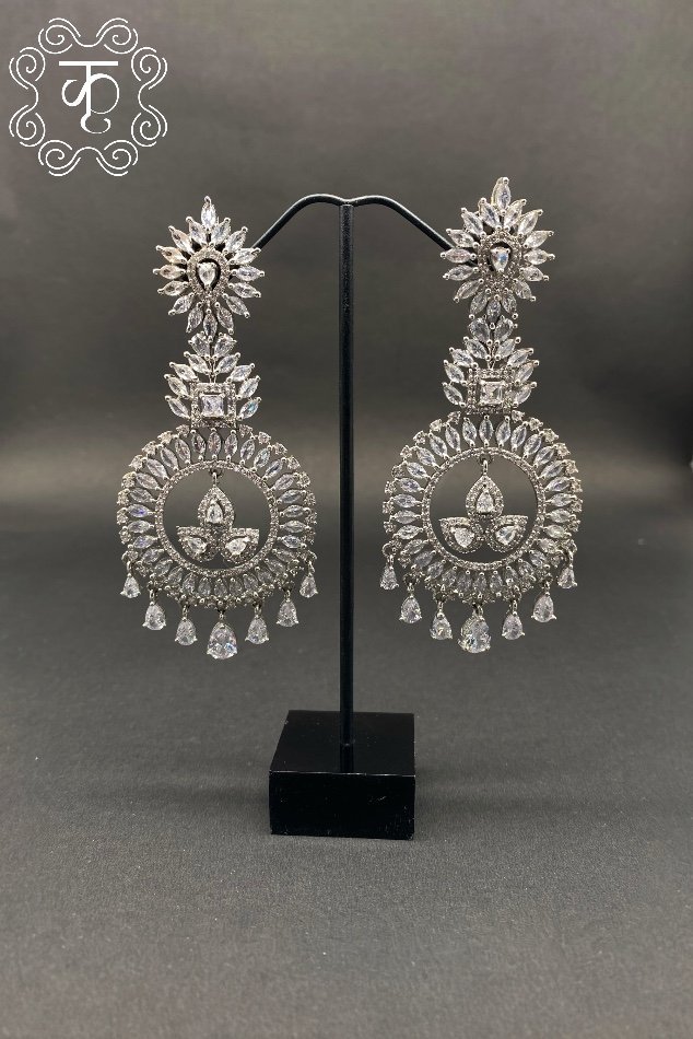 Silver with Mint Green AD Earrings
